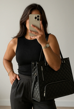 Die All-in-One Bag ersetzt Laptoprucksack, Handtasche und Lunchbag in einem. Sie begleitet dich ins Büro, an die Uni oder auf Reisen – ohne dass du dich zwischen Stil und Funktion entscheiden musst.